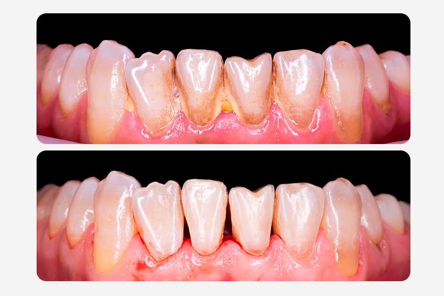 Maus hábitos de higiene bucal favorecem essa condição e entre os adultos é a maior causa de perda de dentes entre outros problemas. A escovação não é capaz de remover o tártaro, esse procedimento deve ser feito pelo dentista, que avalia cada situação.